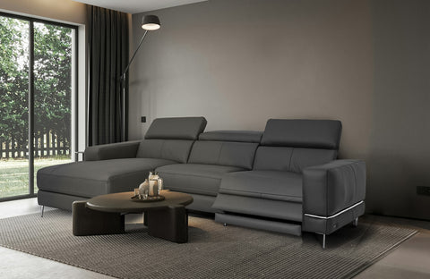 Mejore su experiencia de descanso con este elegante y lujoso sofá seccional, diseñado para quienes buscan comodidad y funcionalidad. Fabricado con estética moderna e innovación ergonómica, este mueble cuenta con un sillón reclinable eléctrico y reposacabezas ajustables, tapizado en suave cuero pigmentado para un acabado atemporal.