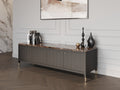 Experience the Features in MotionÉlégant et raffiné, le meuble TV de luxe Alessandra présente une silhouette moderne avec un plateau en pierre naturelle et des tons bois profonds. Son design à quatre portes s'ouvre sur de spacieux tiroirs intérieurs offrant un rangement dissimulé, alliant élégance visuelle et fonctionnalité. Idéal pour les salons contemporains à la recherche d'une sophistication subtile.