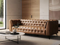Nova Modern Chesterfield Tan Leather 3 Seater sofa showcasing plush tufted cushions and a sleek design.