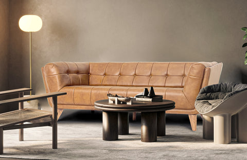 Experience the Features in MotionLe canapé 3 places Divano Cognak allie géométrie douce et présence architecturale. Ses accoudoirs légèrement évasés et son dossier capitonné créent une silhouette sculpturale, tandis que le cuir aniline beige chaud offre une riche patine naturelle. Reposant sur des pieds fuselés en chêne teck, ce meuble incarne à la fois raffinement et confort chaleureux.