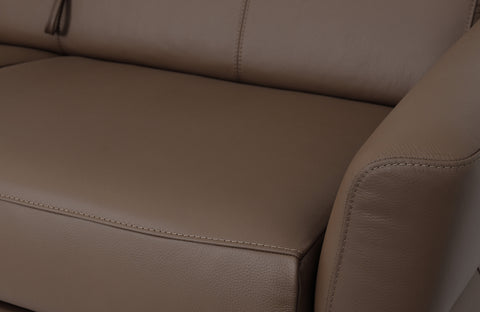 Elena brown Leather Loveseat Sofa Bed close-up of luxurious leather upholstery and stitching.