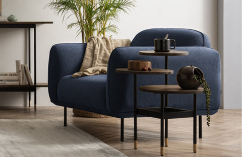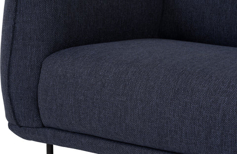 Experience the Features in MotionLe fauteuil d'appoint Livia Blue est conçu pour sublimer n'importe quel espace grâce à ses lignes douces et sa forme structurée. Revêtu d'un tissu Linsey aux tons profonds, il offre un cocon de confort soutenu par de fins pieds en métal noir, alliant esthétique chaleureuse et élégance contemporaine.