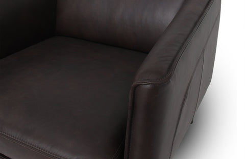 Experience the Features in MotionSublimez votre espace avec ce fauteuil d'appoint raffiné en cuir chocolat noir, alliant silhouette épurée et confort durable. Son assise large et ses accoudoirs discrets invitent à la détente, tandis que ses pieds métalliques élancés lui confèrent une allure aérienne et raffinée. Revêtu de cuir semi-aniline haut de gamme, ce fauteuil apporte un caractère vintage et une sophistication moderne à n'importe quelle pièce.