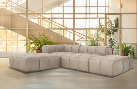 Tuscono Beige Leather Low Profile Modular Sofa - 2 seater lounge ottoman with tufted design and soft leather.