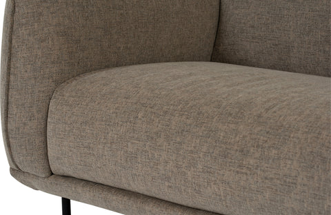 Sitting gracefully on slender black metal legs, the Livia Beige Firm Accent Chair combines contemporary elegance with understated sophistication. The gentle curves of its back and arms create a cocooning effect, ensuring maximum comfort while maintaining a clean, structured aesthetic. Attention to detail is evident in the stitching and proportion, reflecting a commitment to quality craftsmanship.
