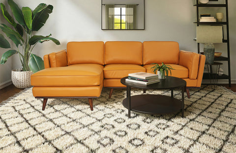 Perfectly balancing style and functionality, the Selina Midcentury Cognac Leather Sectional Sofa transforms any room into a welcoming, cozy retreat. Whether placed in a spacious living room or a stylish apartment, it instantly elevates the ambiance with its warm tones and luxurious texture. Embrace the harmony of form, comfort, and design with this beautifully crafted sectional — a versatile statement piece built to be enjoyed for years to come.